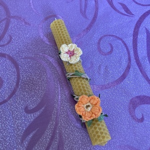 Λαμπάδα από μελισσοκέρι λουλουδάκι πλεκτά