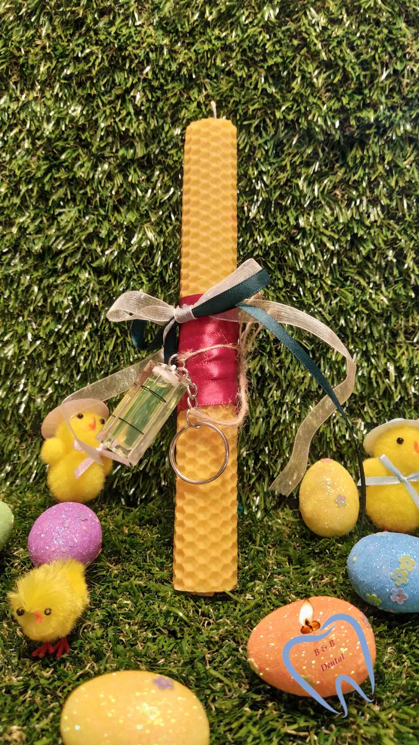 Λαμπάδα από μελισσοκέρι με μπρελόκ αλφάδι